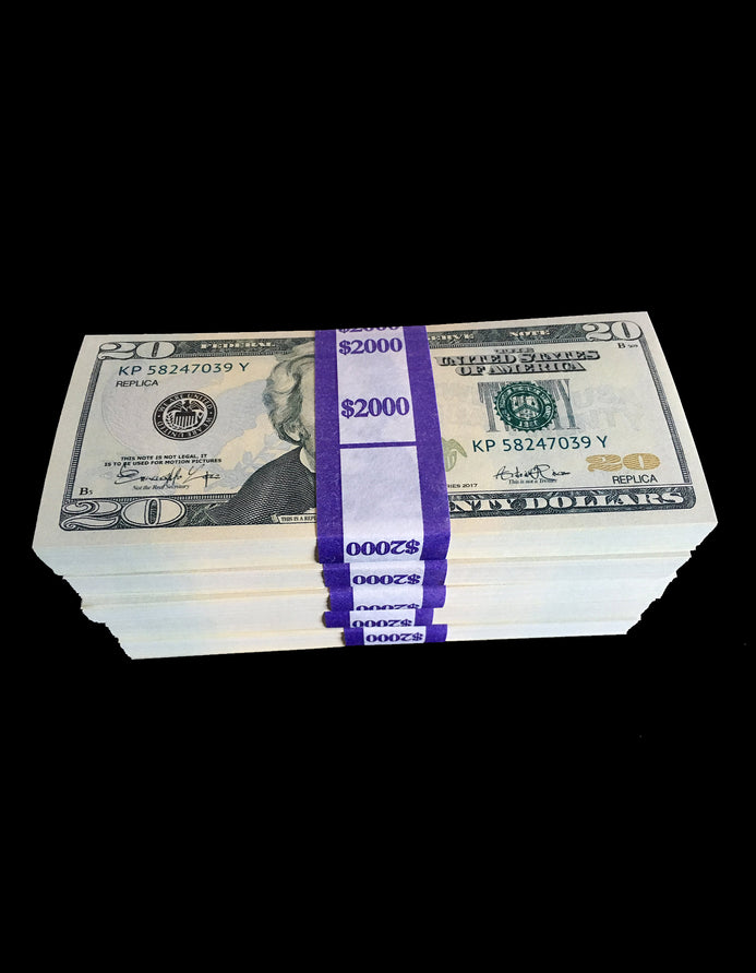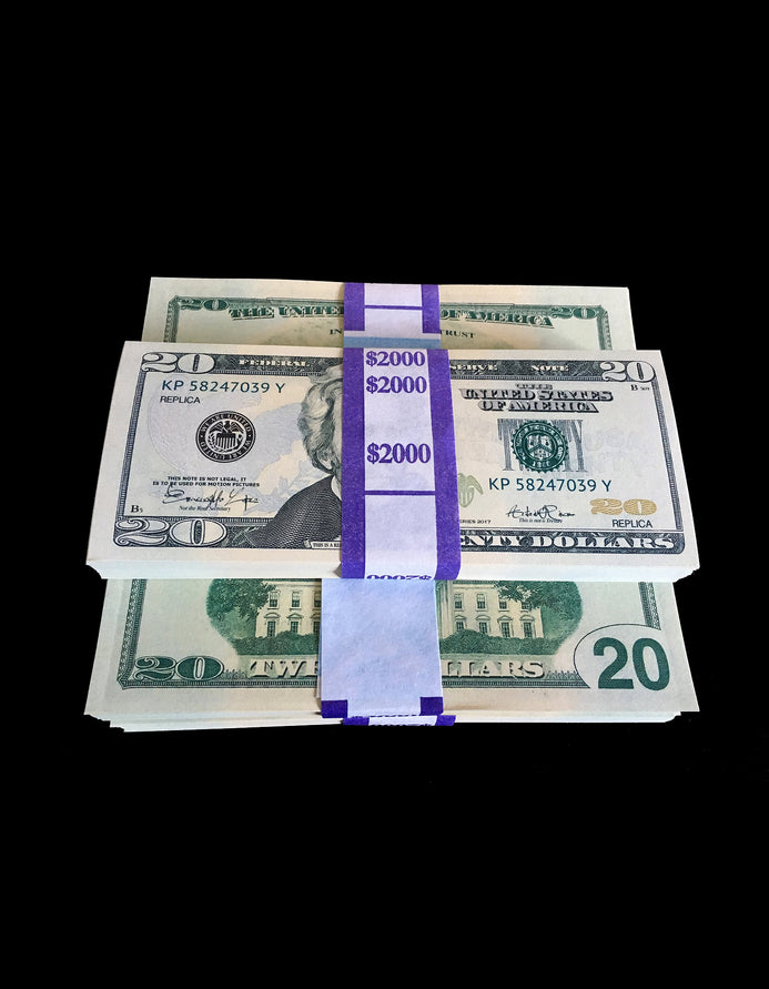 All our prop money stacks are full print double-sided prop money with current bank strap.
