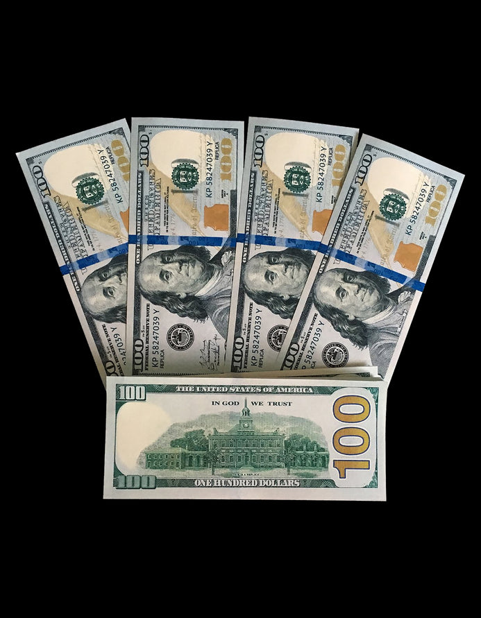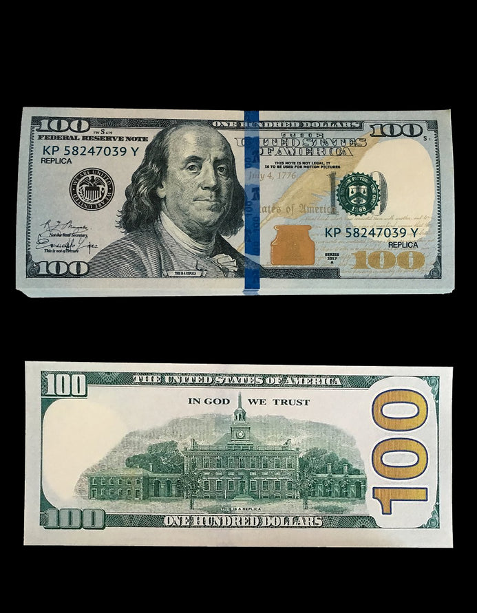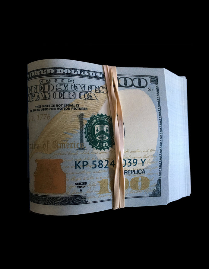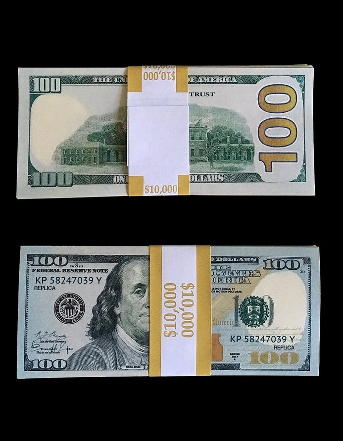 All our prop money stacks are full print double-sided prop money with current bank strap.