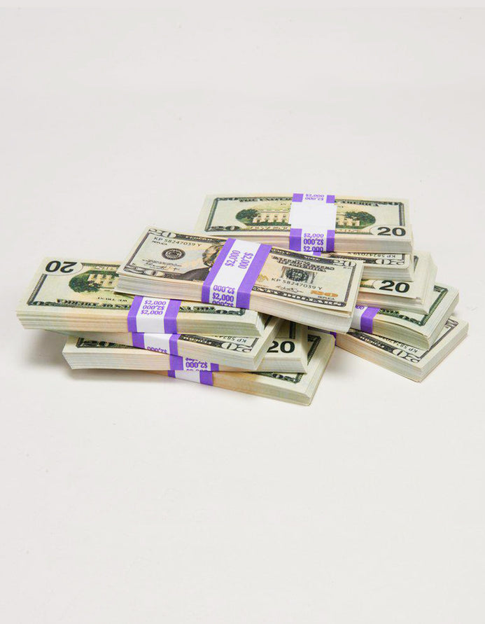 All our prop money stacks are full print double-sided prop money with current bank strap.