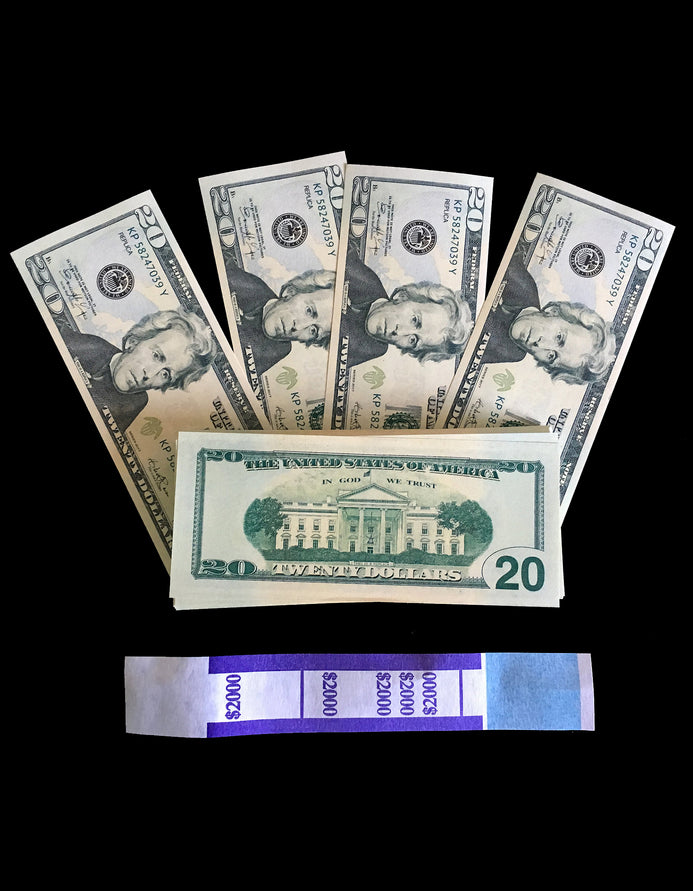 All our prop money stacks are full print double-sided prop money with current bank strap.