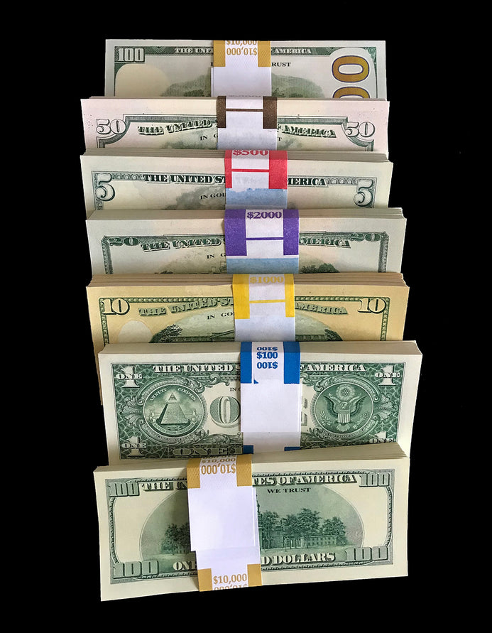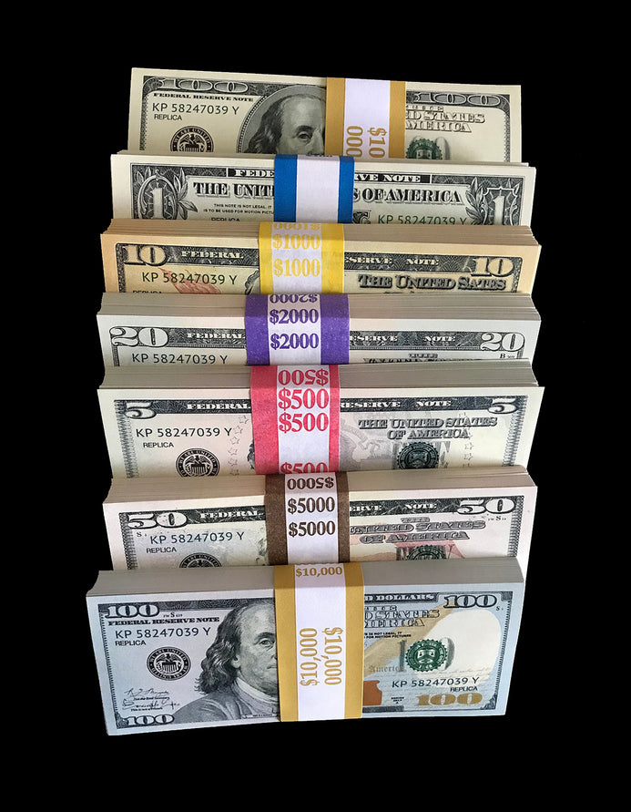All our prop money stacks are full print double-sided prop money with current bank strap.