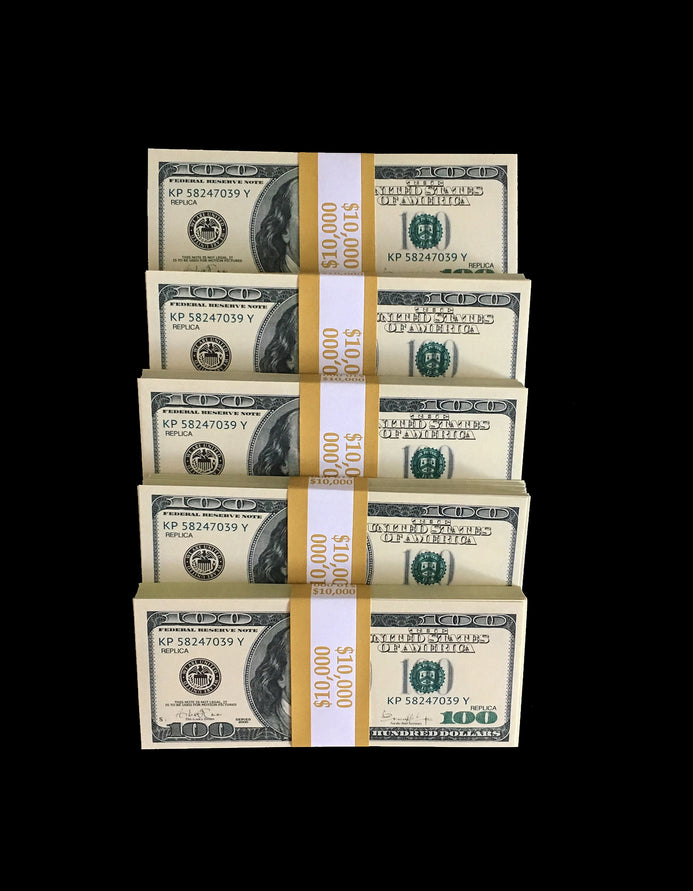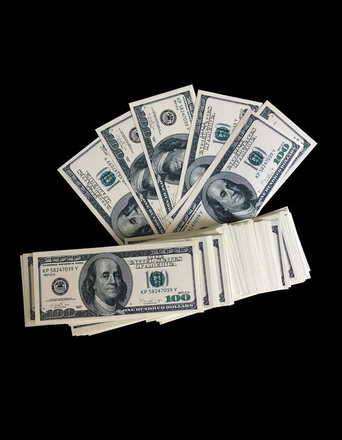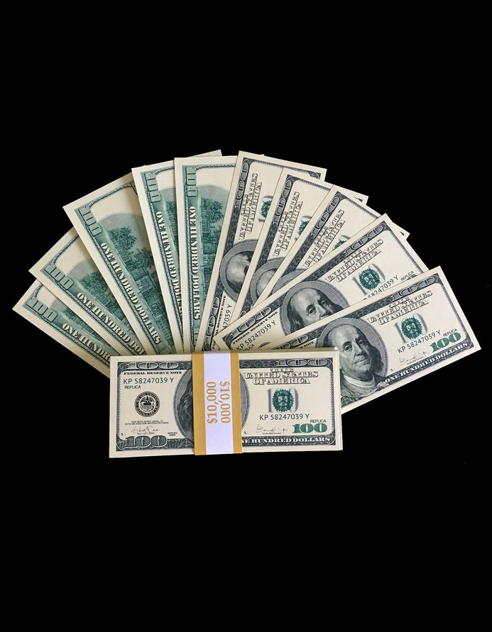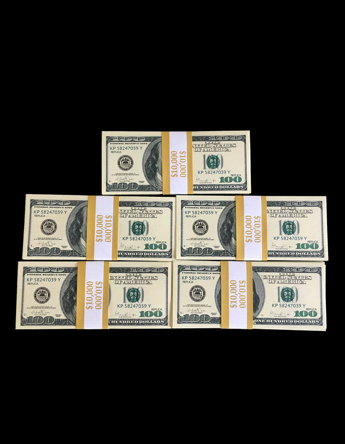 All our prop money stacks are full print double-sided prop money with current bank strap.