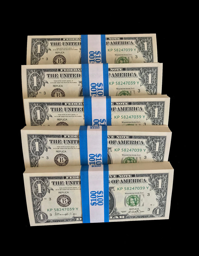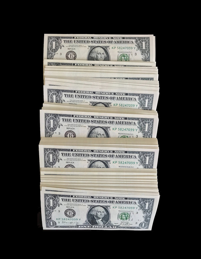 All our prop money stacks are full print double-sided prop money with current bank strap.