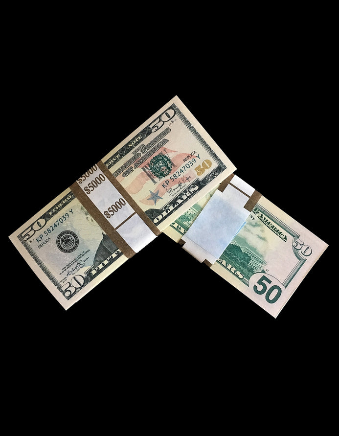 All our prop money stacks are full print double-sided prop money with current bank strap.