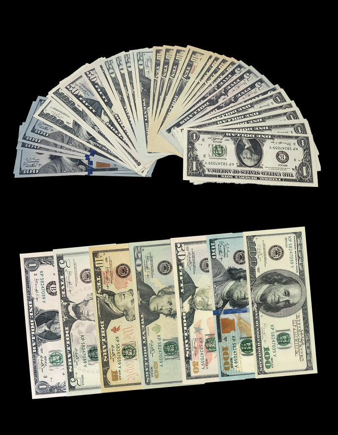 All our prop money stacks are full print double-sided prop money with current bank strap.