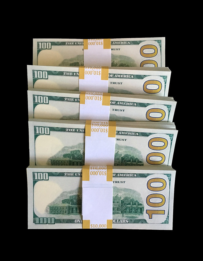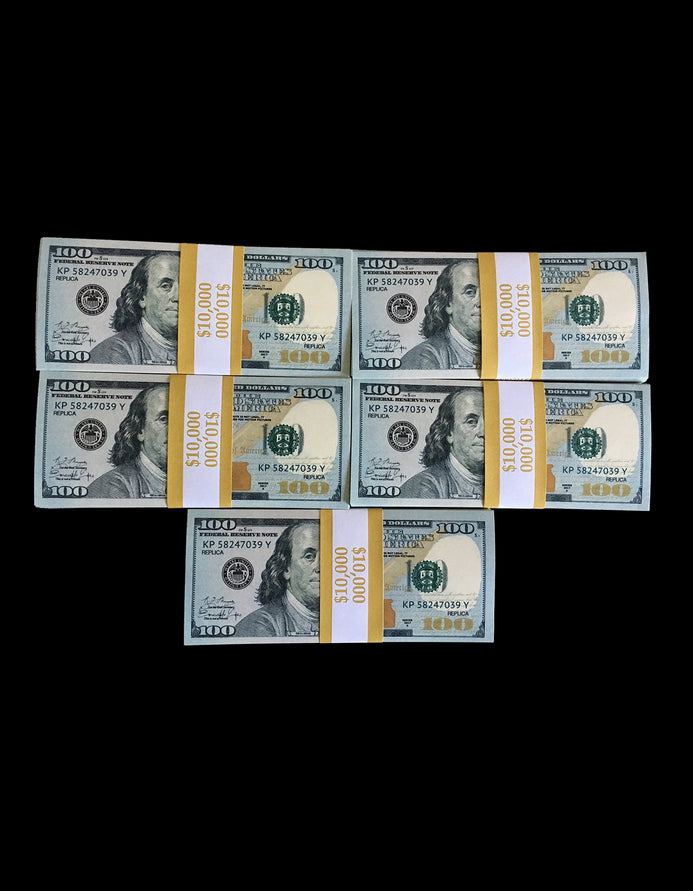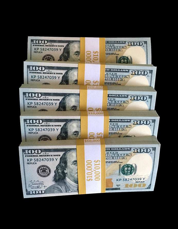 All our prop money stacks are full print double-sided prop money with current bank strap.